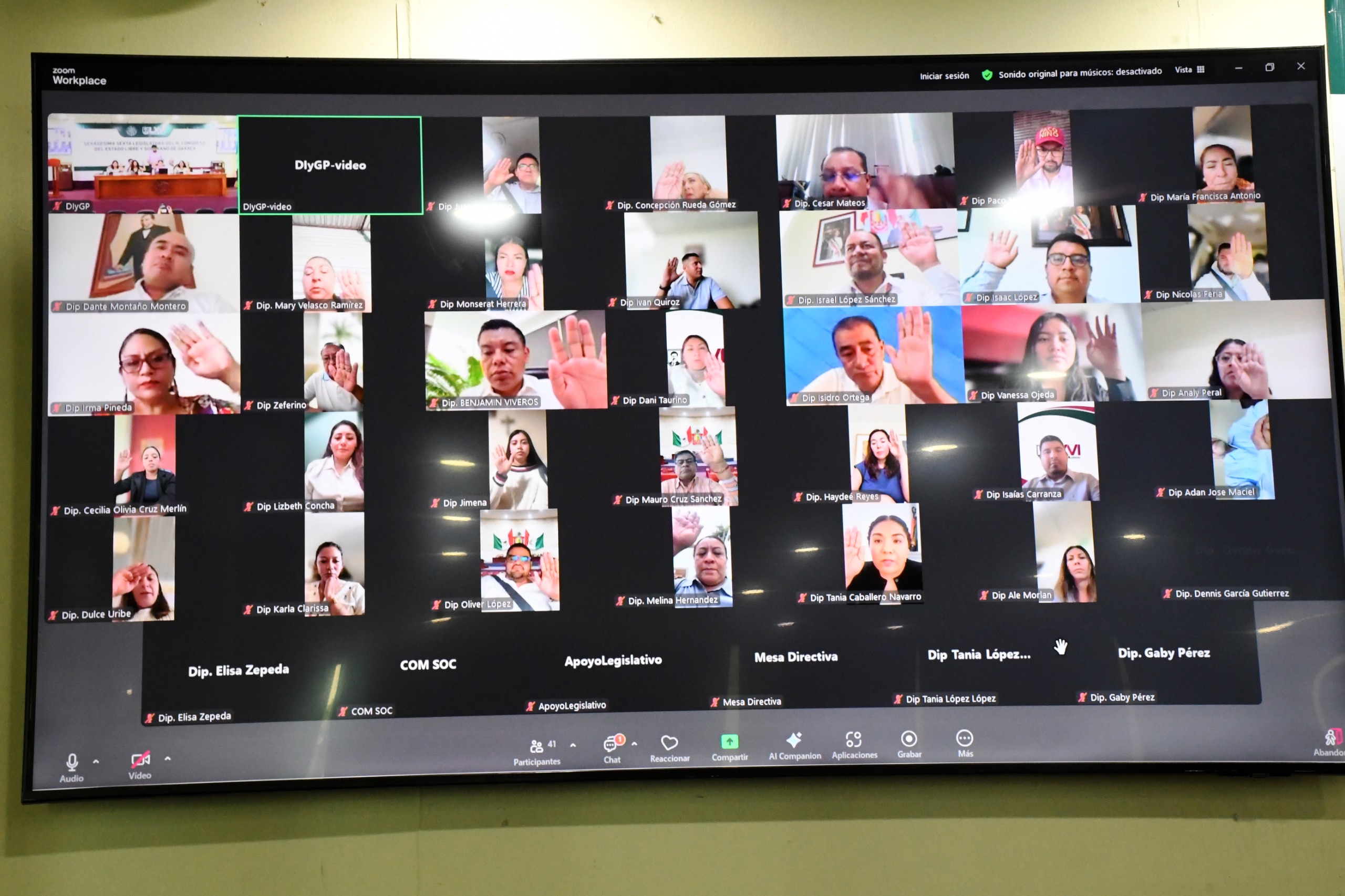 San Raymundo Jalpan, Oax., a 30 de junio de 2025.- En Sesión Virtual del Tercer Periodo Extraordinario de Sesiones del Primer Año de Ejercicio Legal de la LXVI Legislatura, con 40 votos a favor, el Parlamento aprobó de urgencia notoria la iniciativa del presidente de la Junta de Coordinación Política (Jucopo), diputado Benjamín Viveros Montalvo, para reinstalar la inscripción en Letras de Oro de las leyendas que conforman el Muro de Honor del Salón de Sesiones del Honorable Congreso del Estado de Oaxaca.