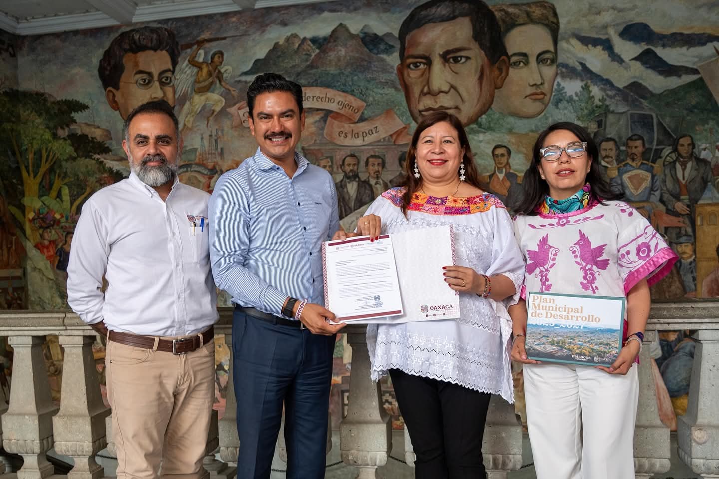 Oaxaca de Juárez, Oax., 18 de septiembre de 2025.- El Ayuntamiento de Oaxaca de Juárez, que preside Ray Chagoya, recibió la validación técnica del Plan Municipal de Desarrollo 2025-2028 por parte del Instituto de Planeación para el Bienestar (INPLABIEN), convirtiéndose en el primer municipio del estado en obtener este importante reconocimiento.